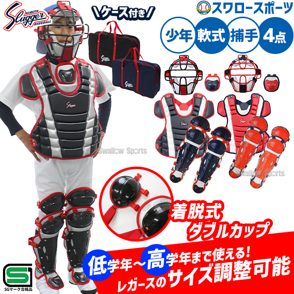 野球 久保田スラッガー 軟式 少年用 キャッチャー防具 4点セット プロテクター スロートガード マスク レガース バッグ付き ケース 防具ケース NJCM-P-L-CT-11-U