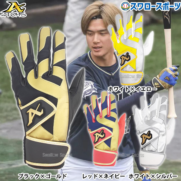野球 アトムズ バッティング手袋 両手 バッティンググローブ 打撃用手袋 両手用 一般用 ダブルベルト カラー手袋 ABG-DB1 ATOMS ウェア ウエア 野球用品 スワロ