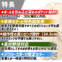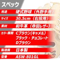 | 仕様・規格 | ●スワロースポーツ限定 ●小指二本対応(コユニ) ●投手・外野手(オールラウンド)用 ●30.5cm ●カラー・平裏カラー:Cブラウン(Dブラウン)、ブラック(チョコレート)、チョコレート(ブラック)、Dブラウン(Cブラウン) ●右投用 ●高校野球対応 ●日本製