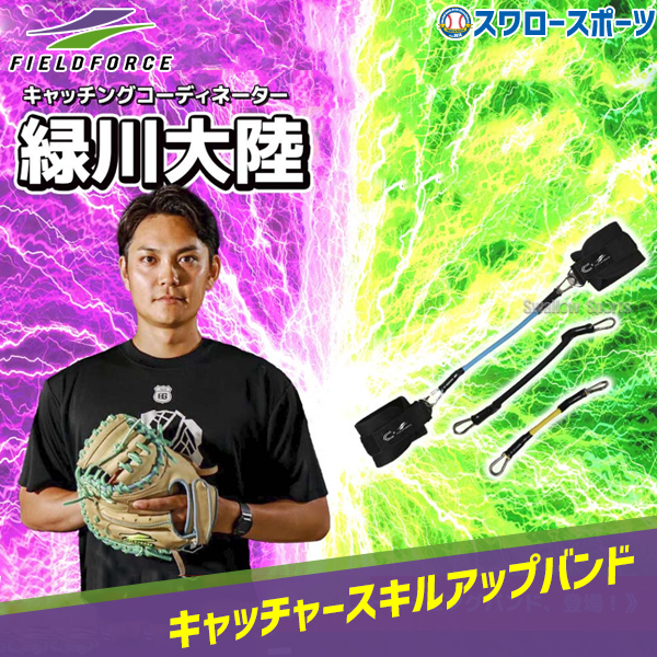 | 仕様・規格 | ●サイズ:ベルト部分/約28.5cm、ゴムチューブ約35cm×25cm ●重量:約270g ●材質:ネオプレーン・ラバー ●生産国:中国 キャッチングコーディネーターの【緑川大陸さん】とのコラボ商品第4弾! キャッチャースキルアップバンドは、キャッチャーの基礎から応用まで幅広く対応できるトレーニングギアです。 ゴムチューブとベルト、リングを組み合わせることで、フレーミング・ボールキャッチ・ボディストップ・スローイングなど、キャッチャーに求められる動作を効率的にトレーニング可能です。 3段階の強度・長さの異なるチューブで、選手のレベルや練習ドリルに応じた使い分けができます。 【特徴】 ゴムチューブ両端にベルトが付き、付属の銀リングを使ってレガースにも固定可能 長さと強度の異なる3本のチューブが付属 選手のレベルやトレーニング内容に応じて強度選択可能 ◆黄色:弱/短◆水色:中/長◆黒色:強/長 組み合わせ自由で、様々な動作パターンに対応 コンパクトで持ち運びしやすく、屋内外でも使用可能 【キャッチャースキルアップバンドを使うとこうなれる!】 キャッチング・フレーミングに必要な力・フォームが鍛えられる ボディストップの形が自然と身に付く スローイングの安定したフォーム作りができる インナーマッスルを刺激し、怪我予防・パフォーマンス向上につながる 【こんな選手にオススメ】 キャッチャーとしてもう一段階レベルアップしたい選手 キャッチング・スローイングに苦手意識がある選手 リハビリ・自主トレーニングに役立つアイテムを探している選手 【使用方法】 レガースとミット側の手首をチューブで繋ぎ、チューブのテンションをかけながらキャッチング 両足首を繋ぎ、股関節や体幹を意識したボディストップの練習に活用 両手首、または両足首を繋ぎ、正しいスローイングフォームを確認しながら投球練習 【使用するチューブについて】 どの練習においても使用するチューブは選手によって異なります。 各ドリルの動作をした際に反発が強すぎないチューブを選択してください。 《使用上の注意》 チューブの強度を超える負荷をかけないようにご注意ください。 装着部分に痛みや違和感がある場合はすぐに使用を中止してください。 直射日光や高温多湿の場所での保管は避けてください。 トレーニング以外の用途には使用しないでください。 小さなお子様の手の届かない場所に保管してください。 |