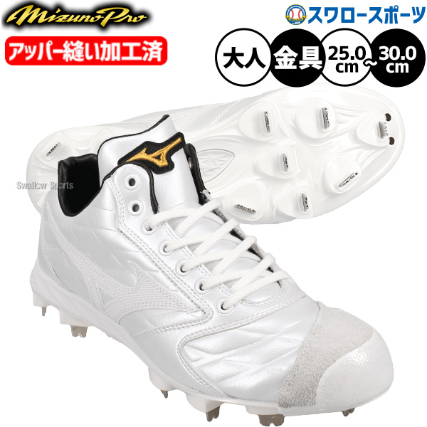野球 ミズノ ミズノプロ スピードレボ スパイク 白スパイク 右足アッパー縫い加工済み ヒモ 金具 金属 樹脂底 埋め込み 限定 大人用 一般用 野球スパイク 11GM26