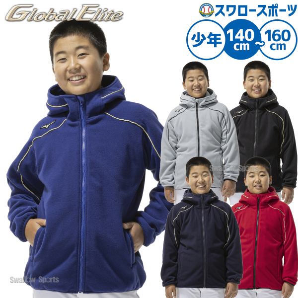 野球 ミズノ グローバルエリート ウェア ウエア フリース フリースパーカー 少年用 ジュニア用 子供用 ブラック ネイビー ブルー ジャケット 練習着 トレーニン