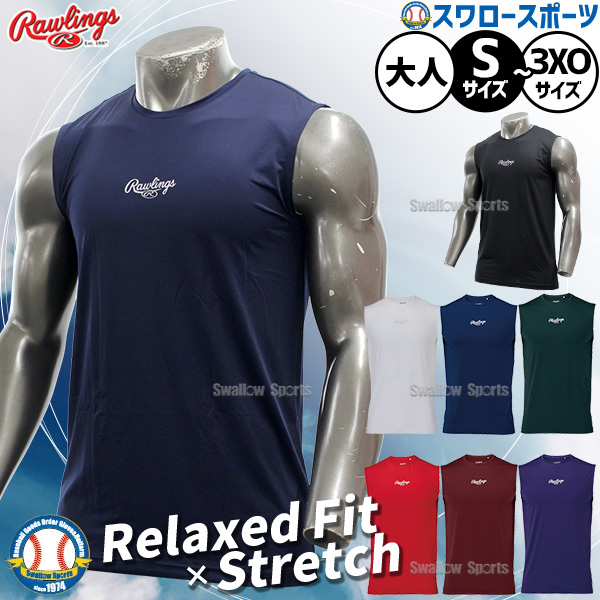 ●商品名:野球 ローリングス アンダーシャツ ノースリーブ 丸首 大人 ウエア Rawlings ASU15S03 一般用 高校野球 野球用品 スワロースポーツ●サイズ:S、M、L、O、XO、2XO、3XO