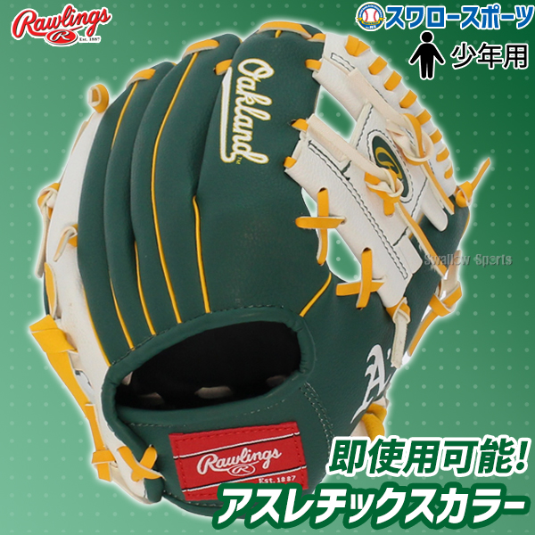 【湯もみ型付け不可】野球 ローリングス キッズ 少年用 軟式グローブ グラブ オークランドアスレチックス 10インチグラブ OAK10 Rawlings 右投用 野球用品 スワ