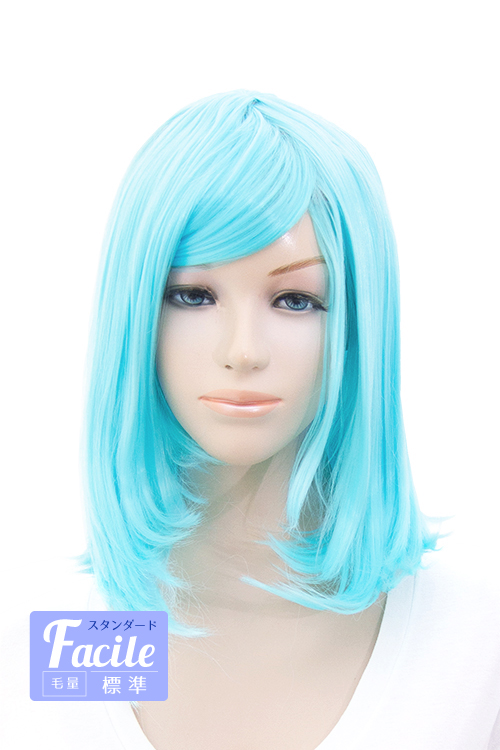 ミディアム 「スカイブルー」「ウィッグネット付」 水色 ミディアムウィッグ かつら コスプレウィッグ 耐熱180℃(081 mi-tf2513)