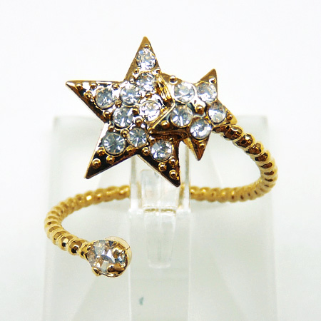 ●商品特徴:(kor254/フリーサイズ)デザイン抜群/お洒落なスター型ピンキーリング/高級プラチナRG加工/煌きGlass/星/ゴールドcr