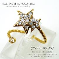 ピンキーリング プラチナ フリーサイズ デザイン抜群 お洒落なスター型ピンキーリング 高級プラチナRG加工 煌きGlass 星 ゴールドcr おしゃれ kor254