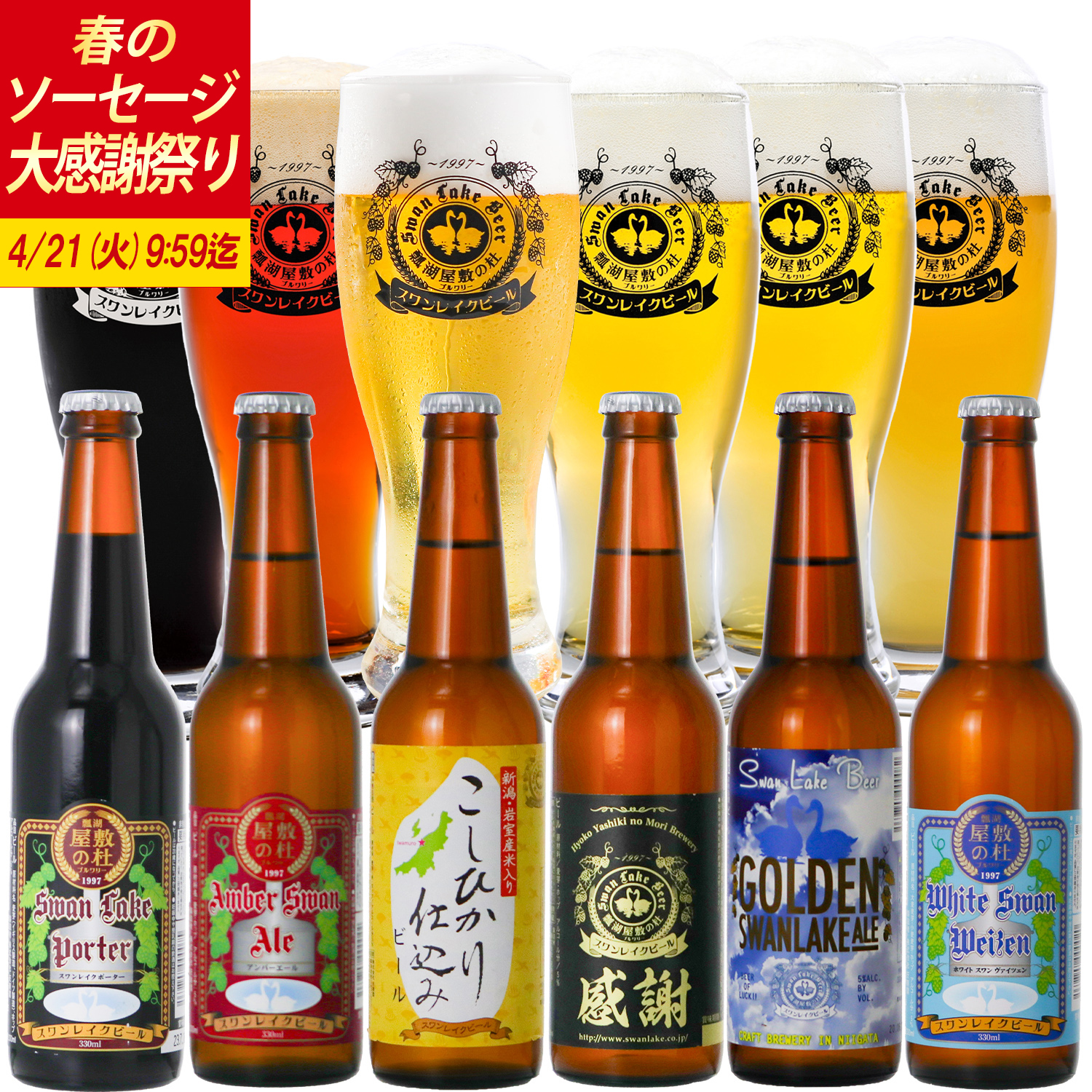 内容量 | 330ml×6本 ゴールデンエール×1本 ポーター×1本 アンバーエール×1本 ヴァイツェン×1本 感謝エール×1本 岩室こしひかり×1本 |