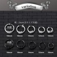 幅:2mm、内径10/12/14/16/18mm(外径:14/16/18/20/22mm)。カラーはシルバー、ブラックの2色でお選びいただけます。お好きな位置にご使用できるので、複数サイズを合わせ付けするのもおすすめです。