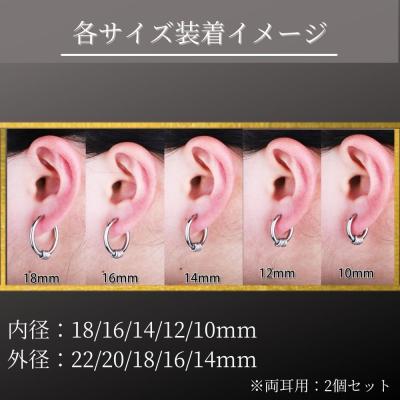 耳にピアス穴が開いていなくても装着可能な、リング型のフェイクピアスです。ピアスの内側にバネを埋め込むことにより小さな力で簡単に装着でき、耳たぶ以外にも軟骨部分などお好きな位置にご使用いただけます
