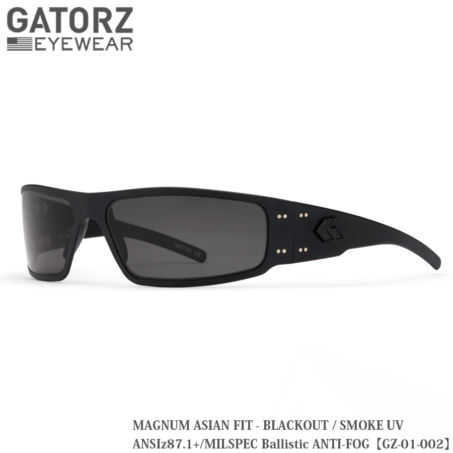 GATORZ(ゲイターズ) ANSI Z87.1+ MILSPEC BALLISTIC MAGNUM ASIANFIT ブラックアウト スモークUV アンチフォグレンズ GZ-01-002