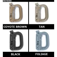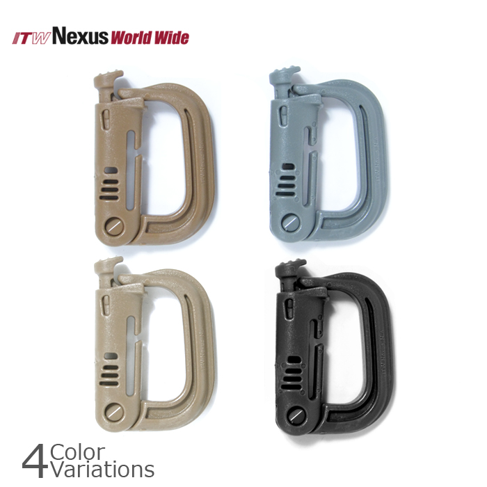 1インチMOLLEウェビングに取り付けることができるカラビナで、グローブを装着していても操作し易いリリースレバーとグリップしやすい滑り止め形状なので、使い勝手は金属製のカラビナと比較になりません。