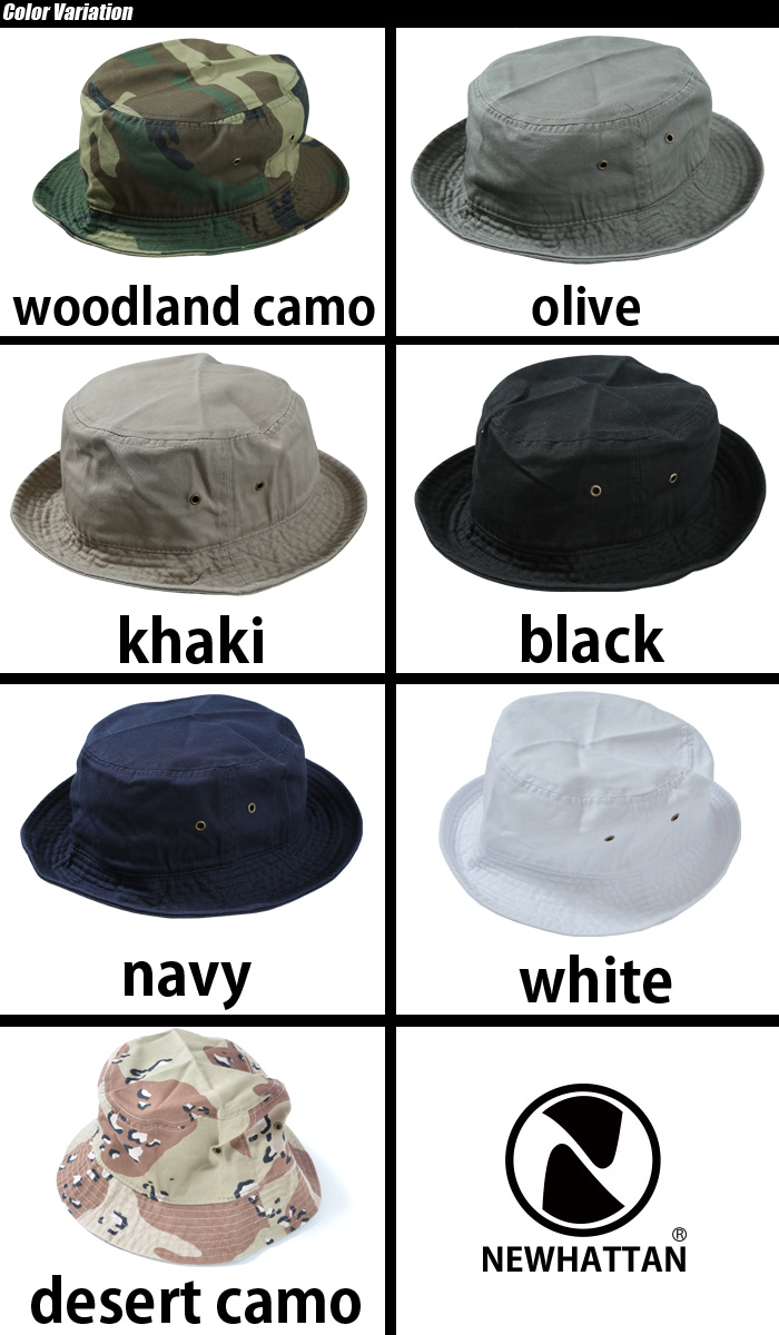 NEW YORK発の伝統的なスタイルを現在にハイクオリティ低価格で実現するNEWHATTAN。コットン素材のしっかりとした生地を使用したバケットハット。適度なウォッシュ加工で柔らかく被りなれたほどの心地よさです。