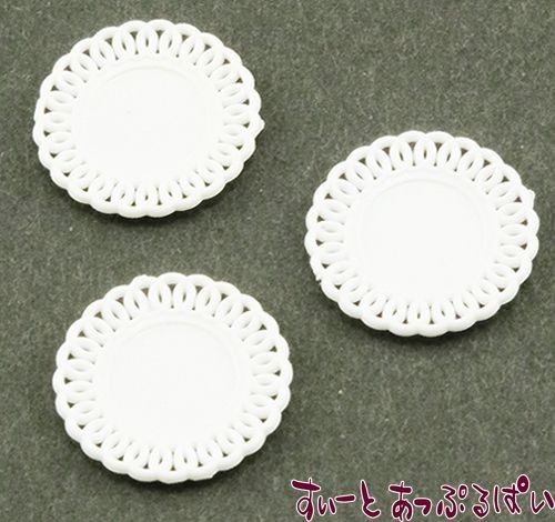 クリックポスト可 ミニチュア Chrysnbon プラスチック製レースエッジプレート ホワイト 3枚セット CB153 ドールハウス用