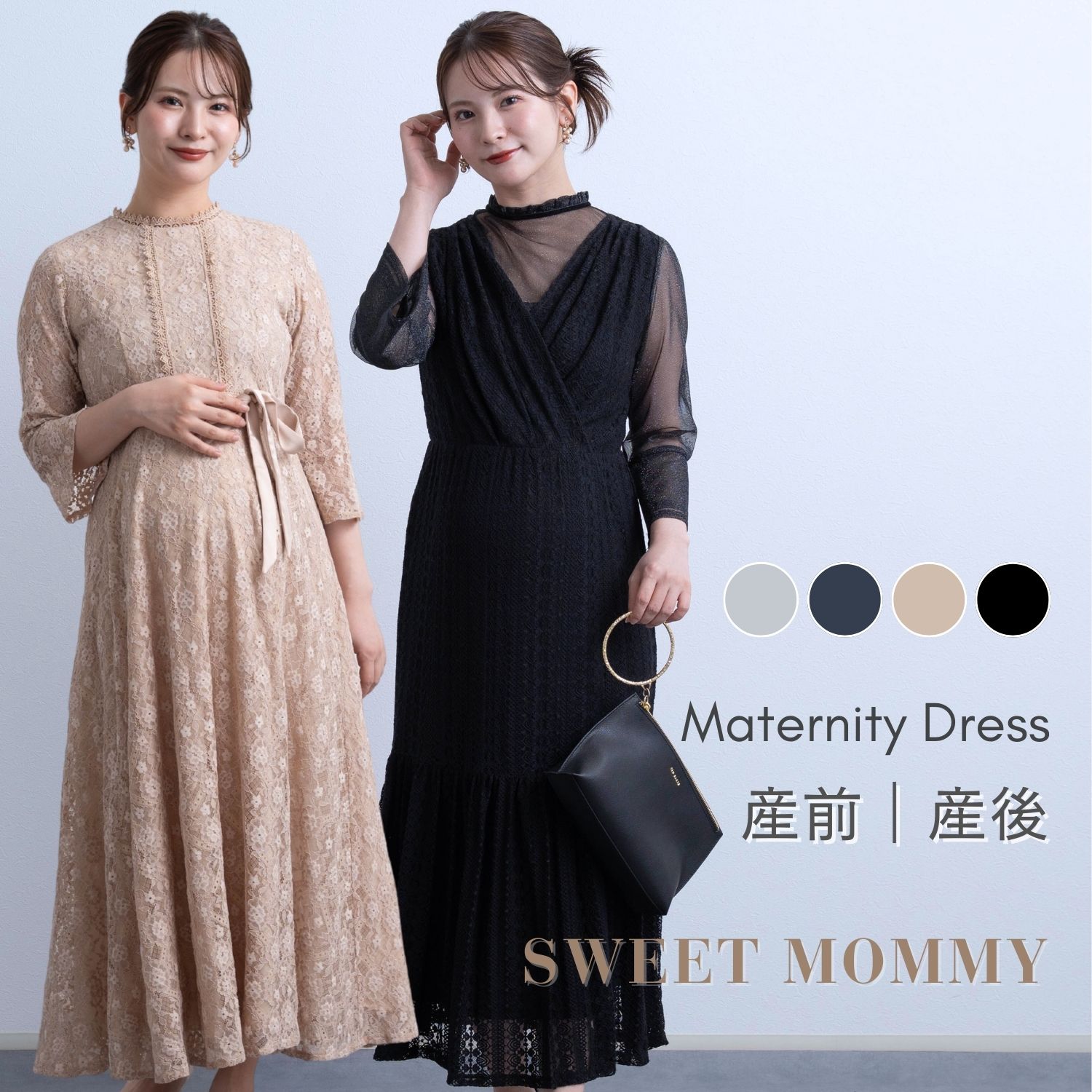産前産後に使える マタニティ ワンピース ドレス 授乳服 授乳口付き 春 夏 秋 冬 フォーマル レース ロング 30代 40代 50代 セレモニー 結婚式 入園式 試着可