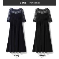 ※5分袖タイプは首元後ろのベロアリボンがございません。/Black着用