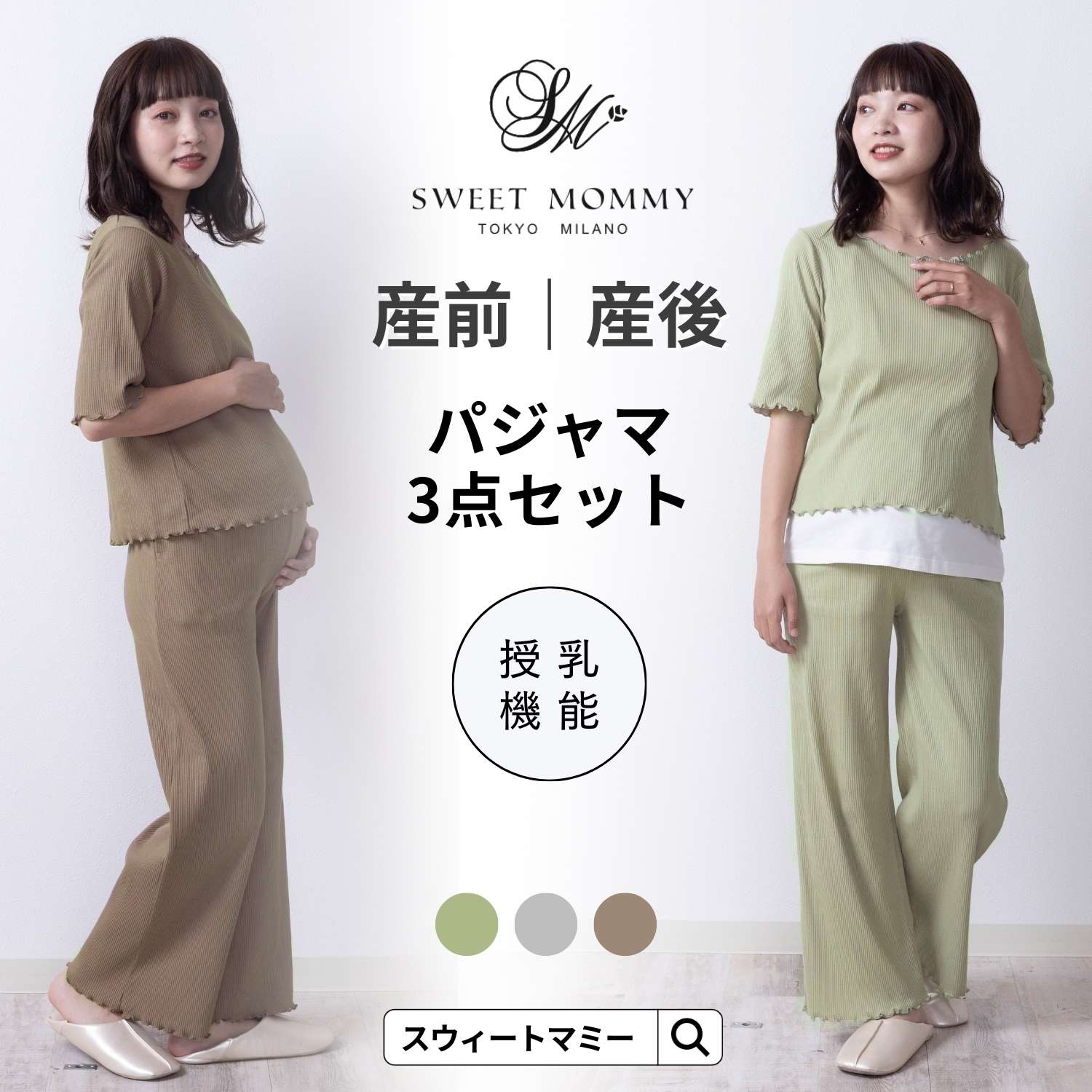 スイートマミー スウィートマミー SweetMommy ルームウエア ルームウェア ルームワンピ 家中服 部屋着 おウチ時間 おうち ナイティ パジャマ 出産準備 パジャマ 産院 入院 病院 シンプル 5分袖 グレー ミント モカ マタニティ 3点セット おうち時間 おうちパジャマ おうちナイティ 着回し コットン ポリエステル 授乳キャミ キャミソール カシュクール 授乳口 ノンストレス 着痩せ 細身せ 臨月 抗菌 ポケット付き ポケット パンツ ズボン トップス テレコ生地 テレコ ベア天竺