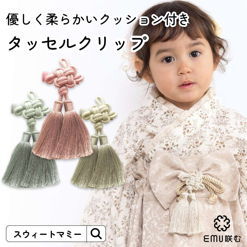 ベビーヘアアクセサリー タッセルクリップ 赤ちゃん 初詣 ひな祭り お宮参り 結婚式 初節句 [M便 2/6]【メール便可】
