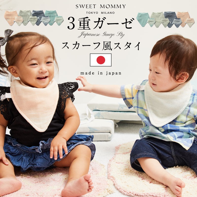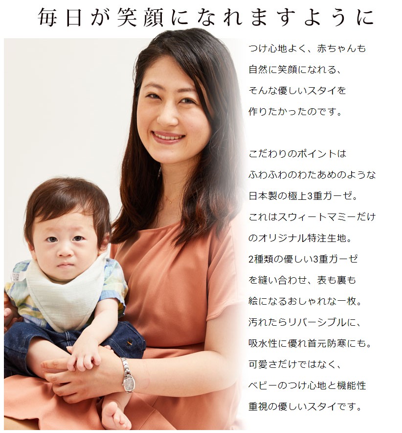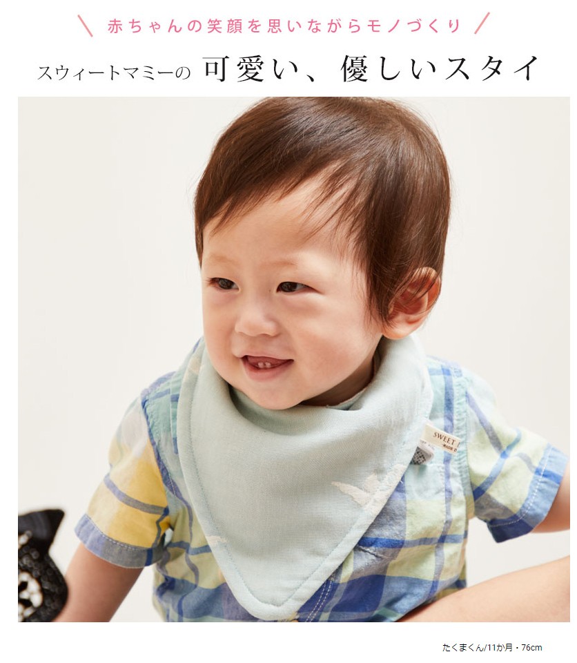 如何にも「スタイ」という見た目ではなく、スカーフ風でとってもおしゃれなデザインが◎