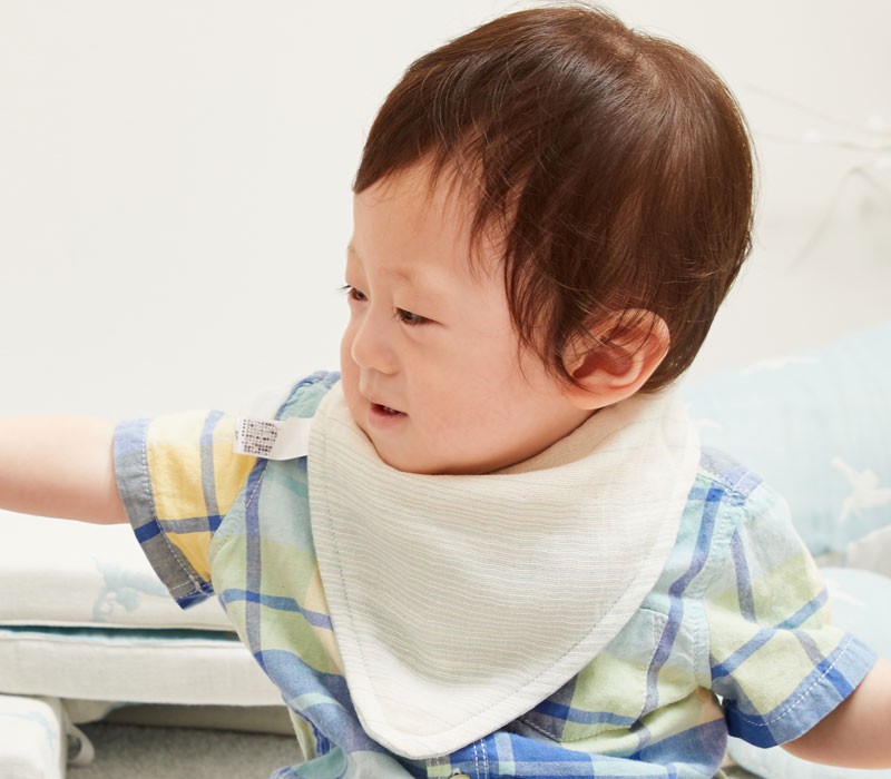 赤ちゃんの首元をぐるっとしっかりカバーし、大切なお洋服を守ってくれます。