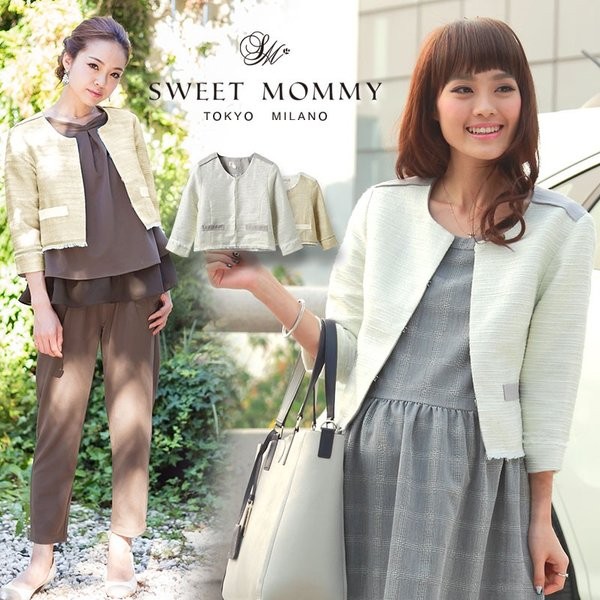 マタニティ ジャケット 産前産後兼用 ノーカラー ラメ混 ツイード ママスーツ 人気