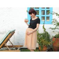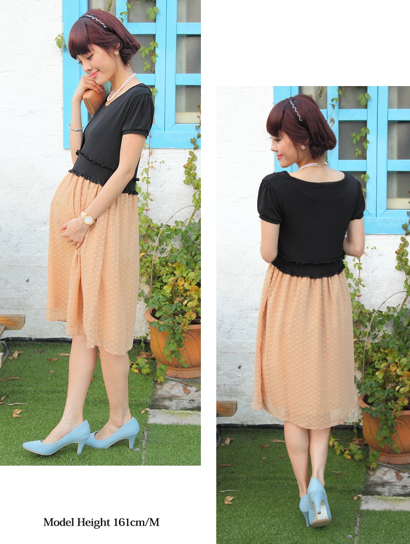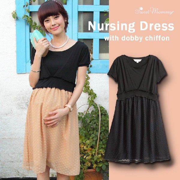 授乳服マタニティウェア ドビー織り 変わりシフォン切り替えワンピース