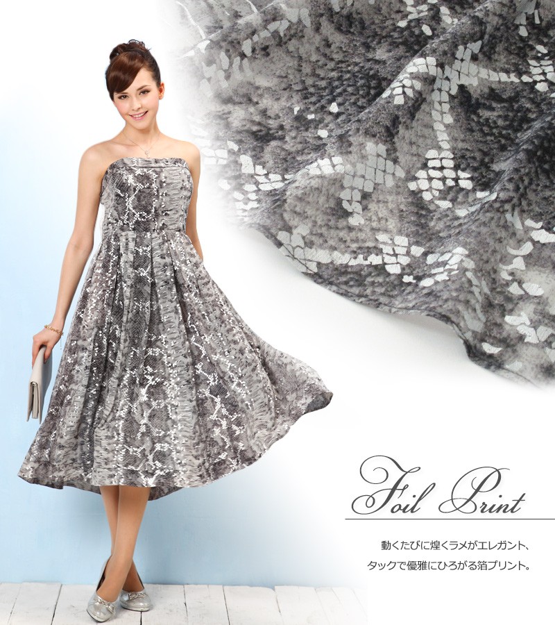 立ち姿が美しい、上品丈のベアトップワンピース。