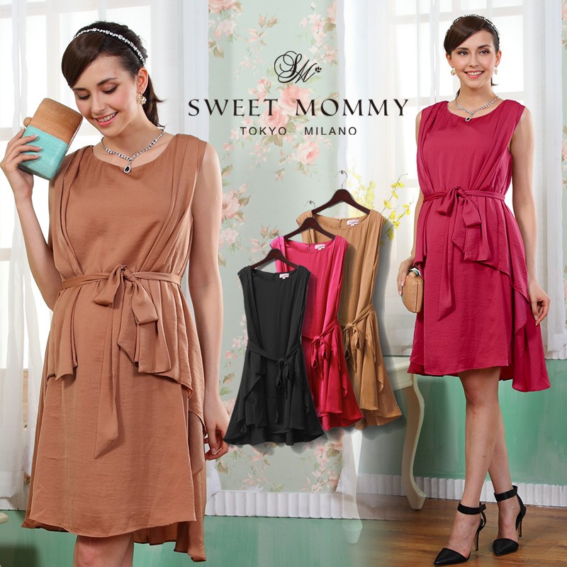 マタニティ服 マタニティワンピース 授乳服 Aライン サテン ドレープ ママスーツ 人気