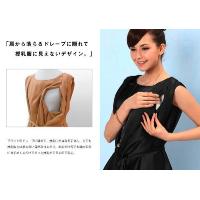 ストンとしたラインでさりげなく体型をカバーしつつ、デコルテを美しく見せるラウンドネックや、動きのあるヘムラインがエレガントなデザイン。 肩から落ちるドレープに隠れて、授乳口が見えません。