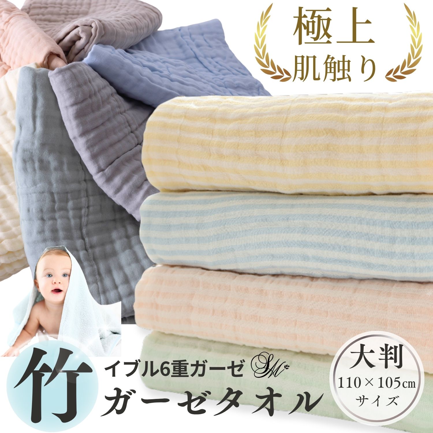6重構造により、ふわっとした柔らかさと弾力感が感じられ、肌に優しく触れるので、赤ちゃんや敏感肌の方にも安心してお使いいただけます。