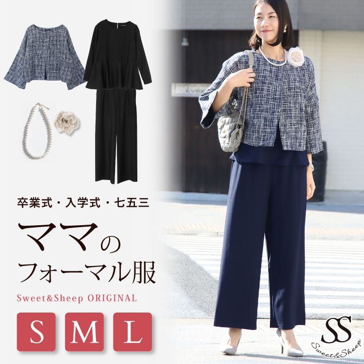 卒業式 母 服装 40代 50代 入学式 おしゃれ 女性 フォーマル レディース コーデセット お得4点 ツイードジャケット セットアップ ワイドパンツ