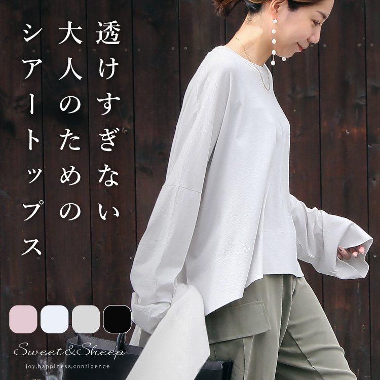 【関連ワード】トップス レディース きれいめ シアー 透け感 ゆるっとシルエット 大人 秋 春 無地 レイヤード カットソー 長袖 高見え 30代 40代 50代 ゆったり きれいめ ストレッチ 長めの袖 インナー シアートップス デザイン 仕事 ママ すいーとあんどしーぷ スイート&シープ sweetandsheep透けすぎない
