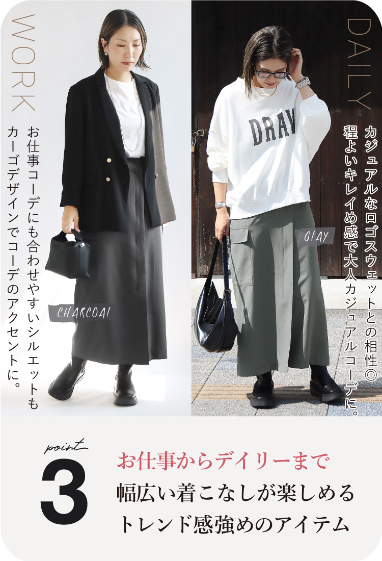 お仕事コーデにも合わせやすいシルエットも