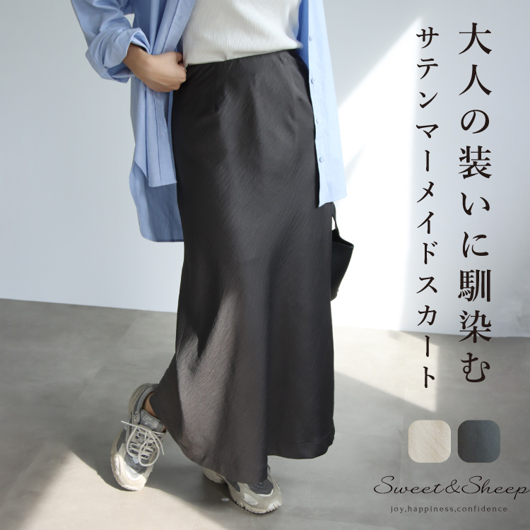 【関連ワード】ボトムス マーメイドスカート ロングスカート ロング丈 マキシ丈 レディース きれいめ サテン 無地 オフィス ウエストゴム オケージョン S M L LL トレンド 細見え 卒業式 入学式 お宮参り 着痩せ 大人 細見え 仕事 通勤 セミフォーマル 30代 40代 50代 すいーとあんどしーぷ スイート&シープ sweetandsheep sweetアンドsheep