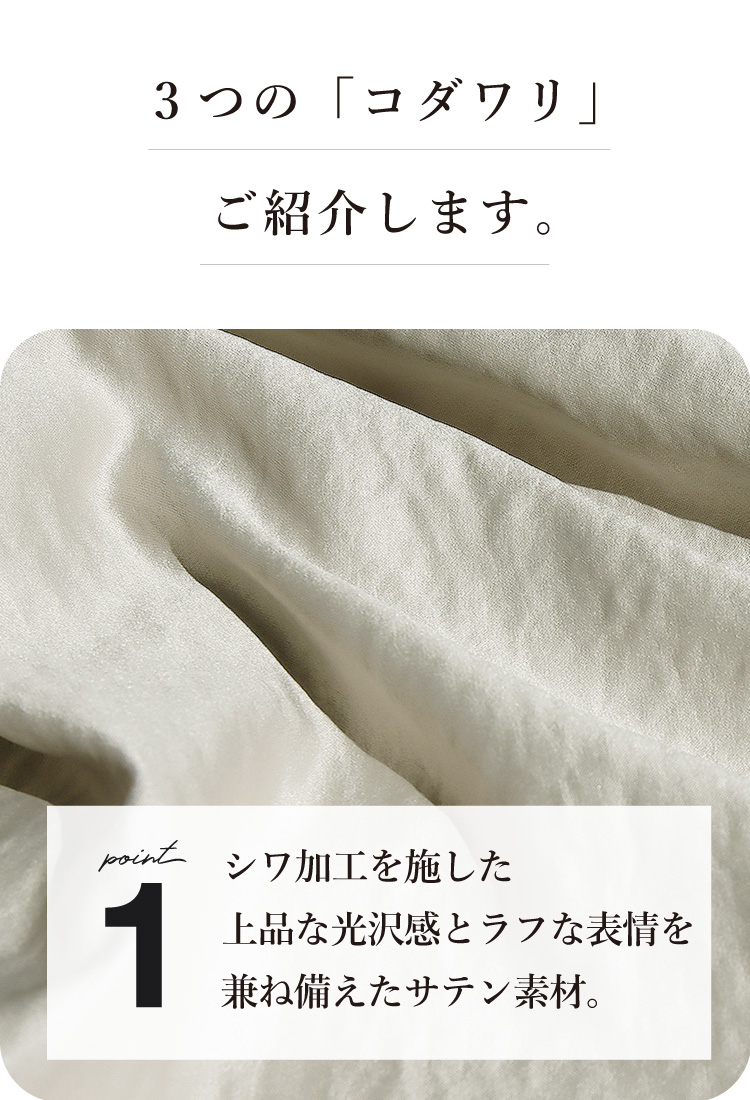 スチームアイロンを浮かした状態でかけていただくとシワが目立ちにくくなります。