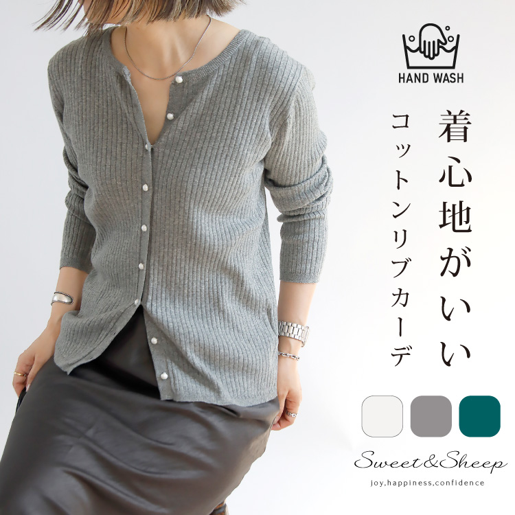 【関連ワード】ニット カーディガン 2way レディース トップス アウター 綿 コットン 羽織り 長袖 体型カバー 上着 リブ リブニット クルーネック 通勤 オフィス 軽い パールボタン 薄手 きれいめ 仕事 洗える M L 30代 40代 50代 ママ 春 夏 上品 洗える ウォッシャブル 大人 白 グレー レディース ママ 母 すいーとあんどしーぷ スイート&シープ sweetandsheep sweetアンドsheep前後2wayで着回し力抜群!