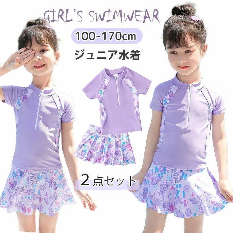 キッズ水着 女の子 セパレート型 水着 2点セット ジュニア水着 100 110 120 130 140 150 160 170 半袖 トップス+スカート インナーパンツ付き 幼稚園 小学生