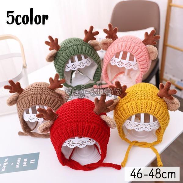ニット帽 帽子 ベビー 子供用 女の子 男の子 赤ちゃん ニットキャップ 耳当て あご紐付き 耳付き 角付き 鹿 トナカイ おしゃれ かわいい ぼうし
