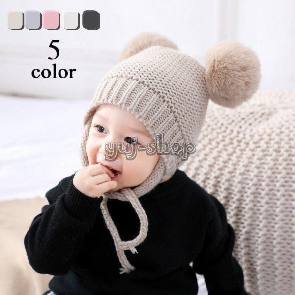 ニット帽 帽子 ベビーキャップ 耳当て 紐付き ボンボン付き ワッチキャップ ベビー キッズ 赤ちゃん 赤ん坊 子供用 ファッション小物 防寒 寒さ対