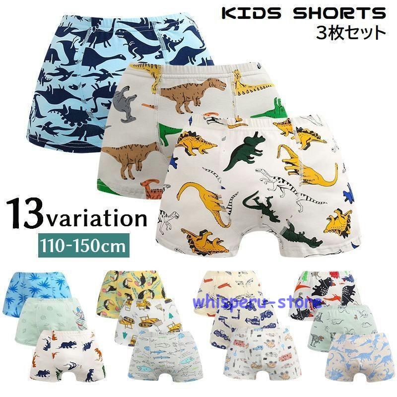 ボクサーパンツ 3枚セット 子供用 キッズ ジュニア 男の子 下着 ショーツ ボクサーブリーフ 前閉じ 恐竜柄 乗り物 総柄 3枚組 アンダーウェア