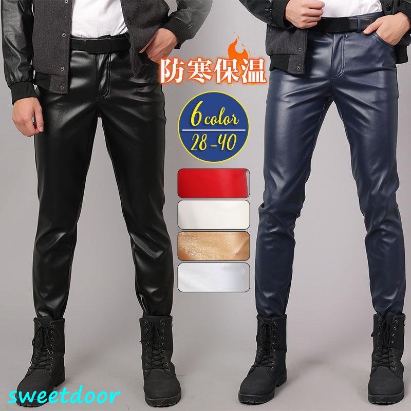 革パンツ メンズ レザーパンツ 革パン ストレッチ 演出 微起毛 防寒 フェイクレザー 無地 大きいサイズ ライダースパンツ 細身 美脚 秋冬