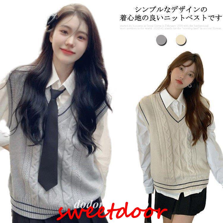 ライン入り ニットベスト Vネック スクールベスト 女子 学生 制服 ニット スクール セーター ノースリーブ 春 夏 秋 冬 JK 通学 高校生