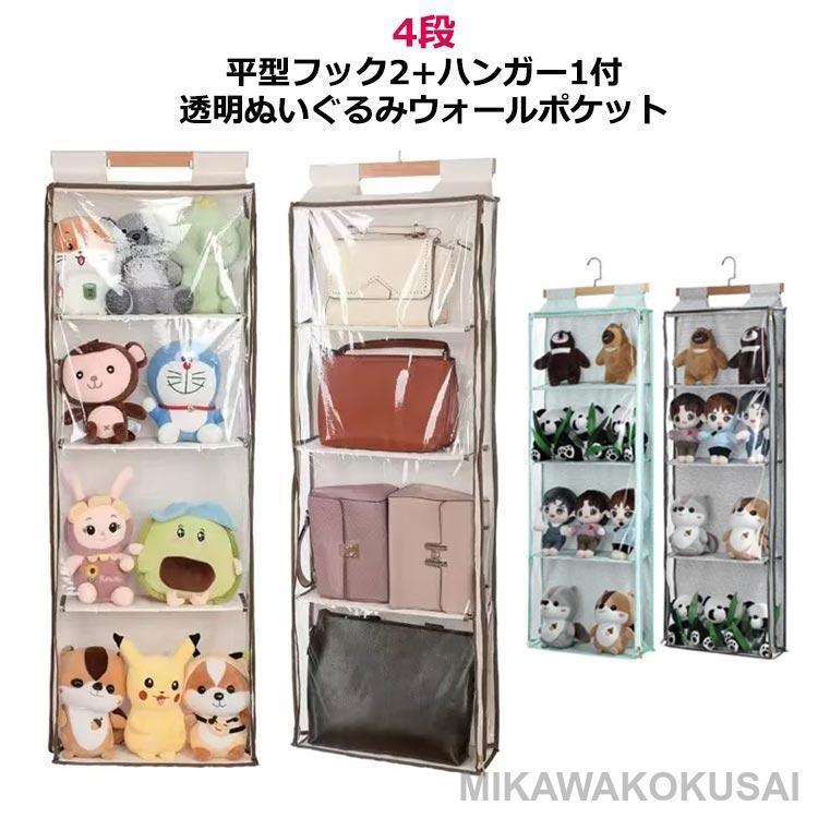コレクション ウォールポケット おしゃれ ぬいぐるみ 収納 大容量 収納 4段 ハンガー フック 付き 収納 透明 吊り下げ収納 ぬいぐるみウォールポ