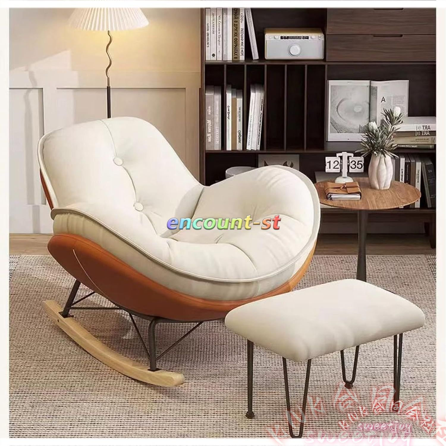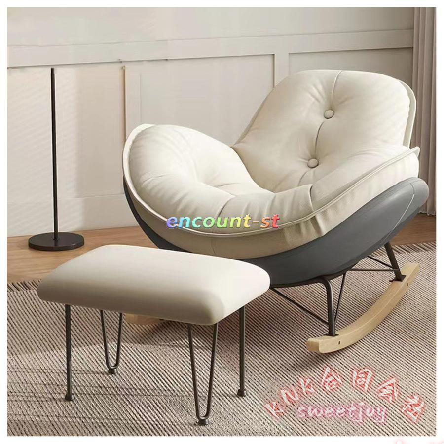 オットマンセットリクライニングロッキングチェア KNK(株) 北欧揺れる椅子特大リラックス水汚れに強い簡単に組立座り心地良いチェア