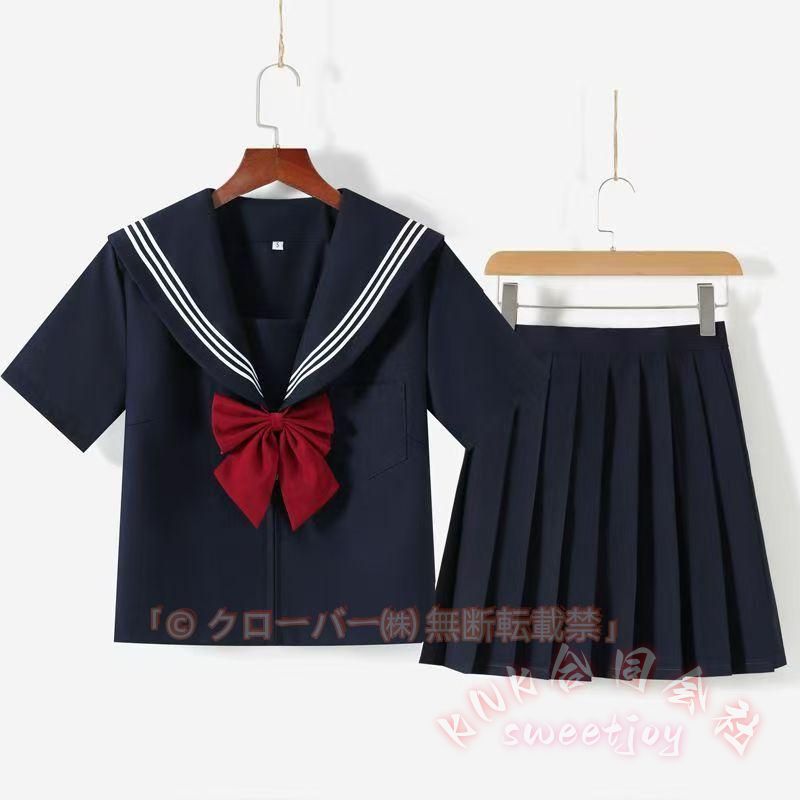 セーラー服 JK制服 セットアップ 単品 半袖 長袖 蝶ネクタイ付き 本格制服 正統派 ブラウス プリーツスカート 丈長め 膝丈 45cm 65cm 75cm 紺