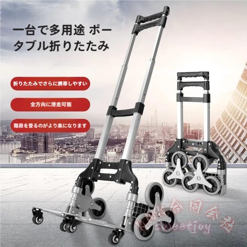 キャリーカート 10輪 階段対応 折りたたみ KNK(株) ハンドトラック 軽量 段差台車 4輪360度回転 静音 大型タイヤ バッグ付き 高さ調節 固定ロープ付 業務用