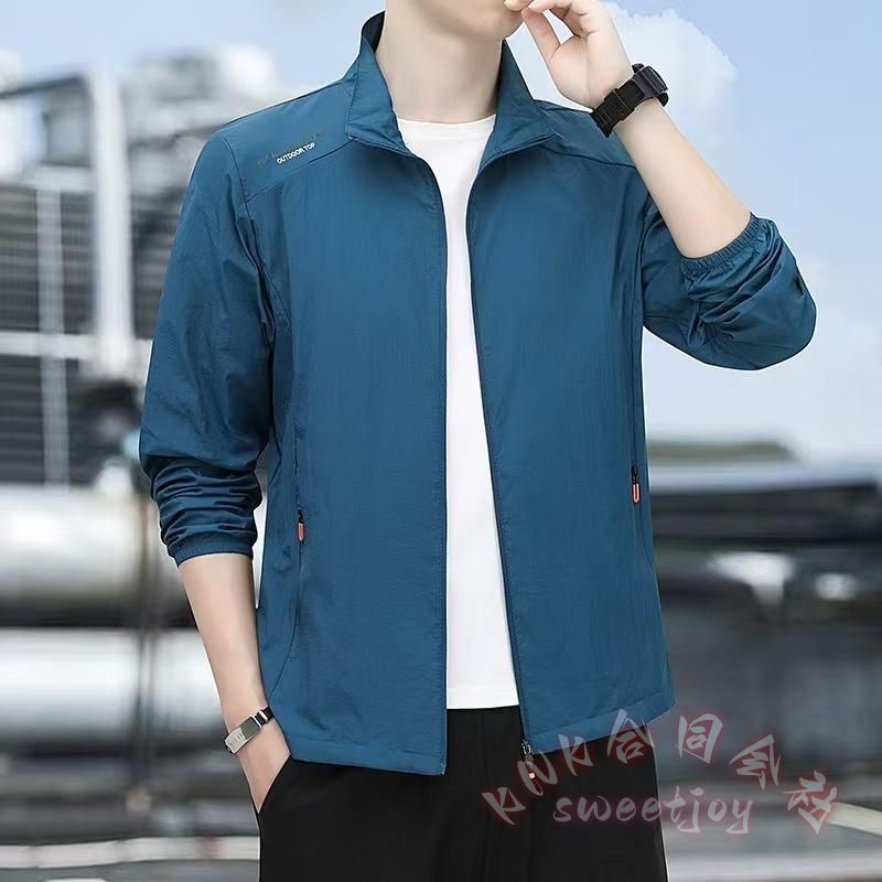 メンズ夏薄手ウインドブレーカーフードなし KNK(株) 裏地なしマウンテンパーカーナイロンジャケットおしゃれカジュアルライトアウターブルゾン通気性抜群