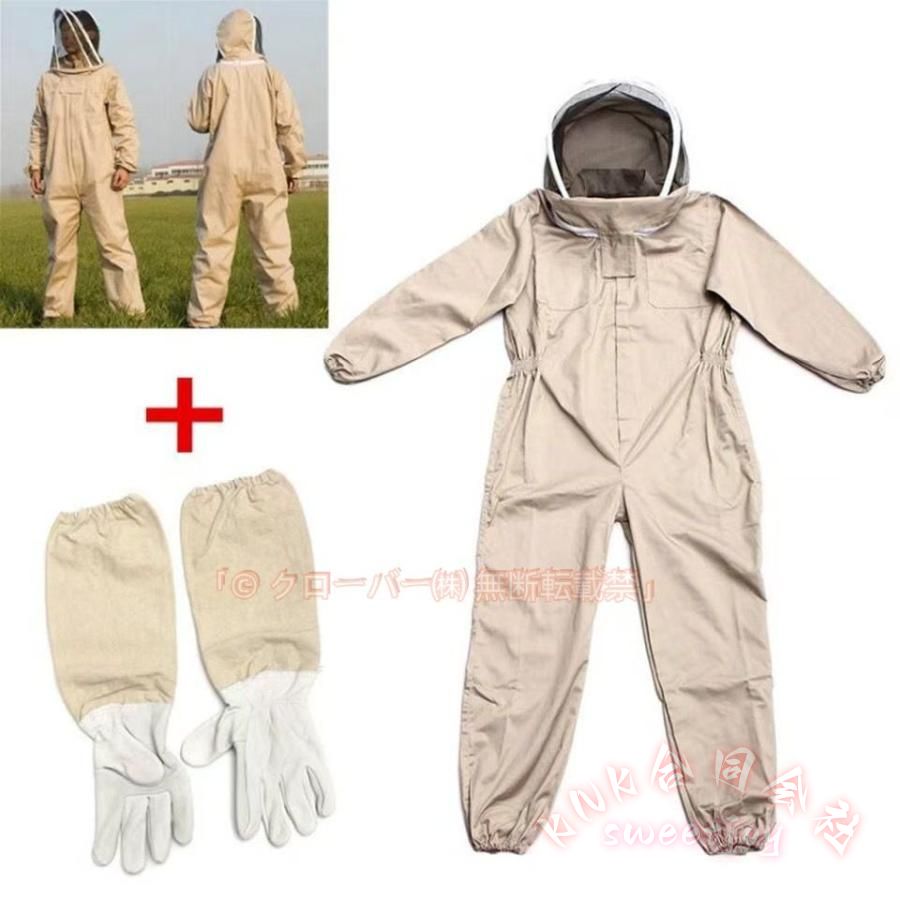 養蜂用 ハチ防護服 スズメ 蜂 防護服 スズメバチ駆除用 フェイスネット付き 通気性 つなぎ服 害虫駆除 虫よけ 作業服 保護装備 万全防護服 帽子 男女兼用