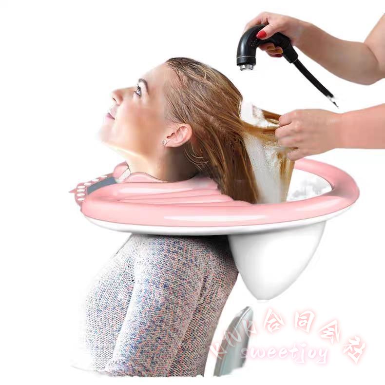 仰向けで座ったまま洗髪できる介護ふろ用品です。頭部を洗浄できる空気式洗髪槽シャンプー台です。