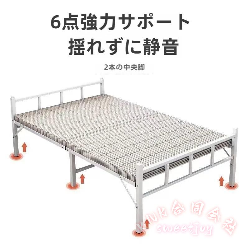 ベッドフレーム マットレス付き セミダブル 折り畳みベッド 完成品 幅100cm スチールベッド 組立不要 白 耐荷重300kg 防錆 頑丈 安定性 耐久性